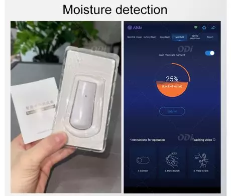 Moisture:Use a professional separated moisture pen to test the moisture in various areas of the skin. The higher the moisture value, the more moisturethe skin contains. When the moisture value reaches 40 or above, the skin moisture content is normal.