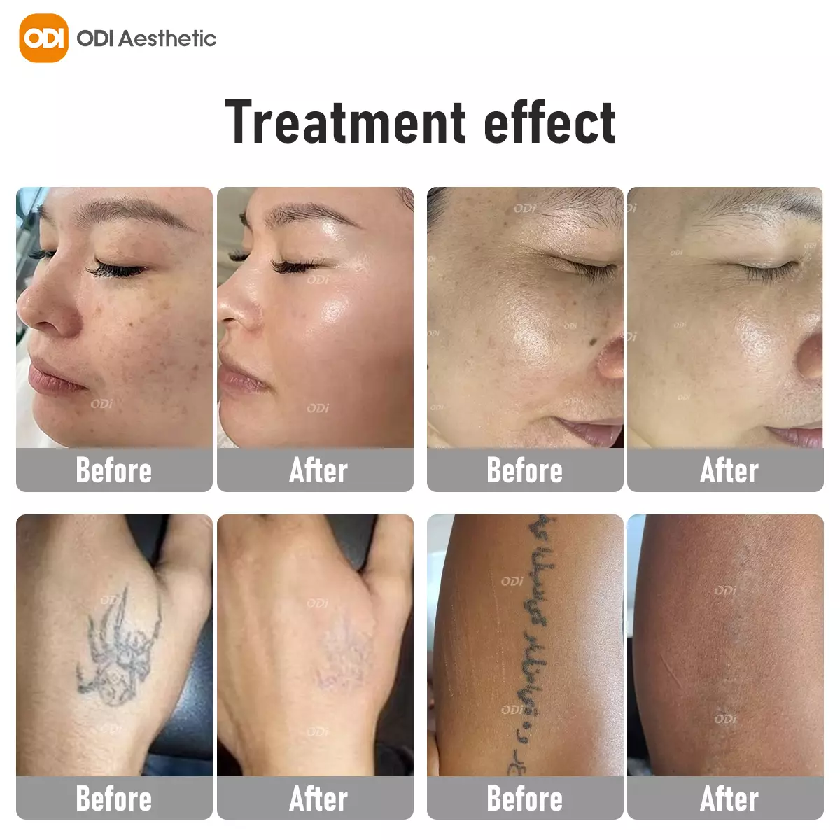 Nd:YAG laser its name from the laser medium, Neodymium: Yttrium-Aluminum-Garnet. Designed specifically to target pigmentation and roughness, this laser also effectively removes old tattoos. The ODI ND:YAG Laser Machine emits specific wavelengths of high-energy light that pigments absorb, shattering them into tiny fragments. Some fragments exit the skin, while others break down further into minute particles, which phagocytes engulf and eliminate through the lymphatic system. The ND:YAG Laser Machine PL-9, featuring optimal wavelengths of 532nm, 755nm, and 1064nm, offers the most precise and safest pico laser treatment for tattoo removal and pigmented lesions, effectively addressing a wide range of pigment and tattoo colors across various skin types.